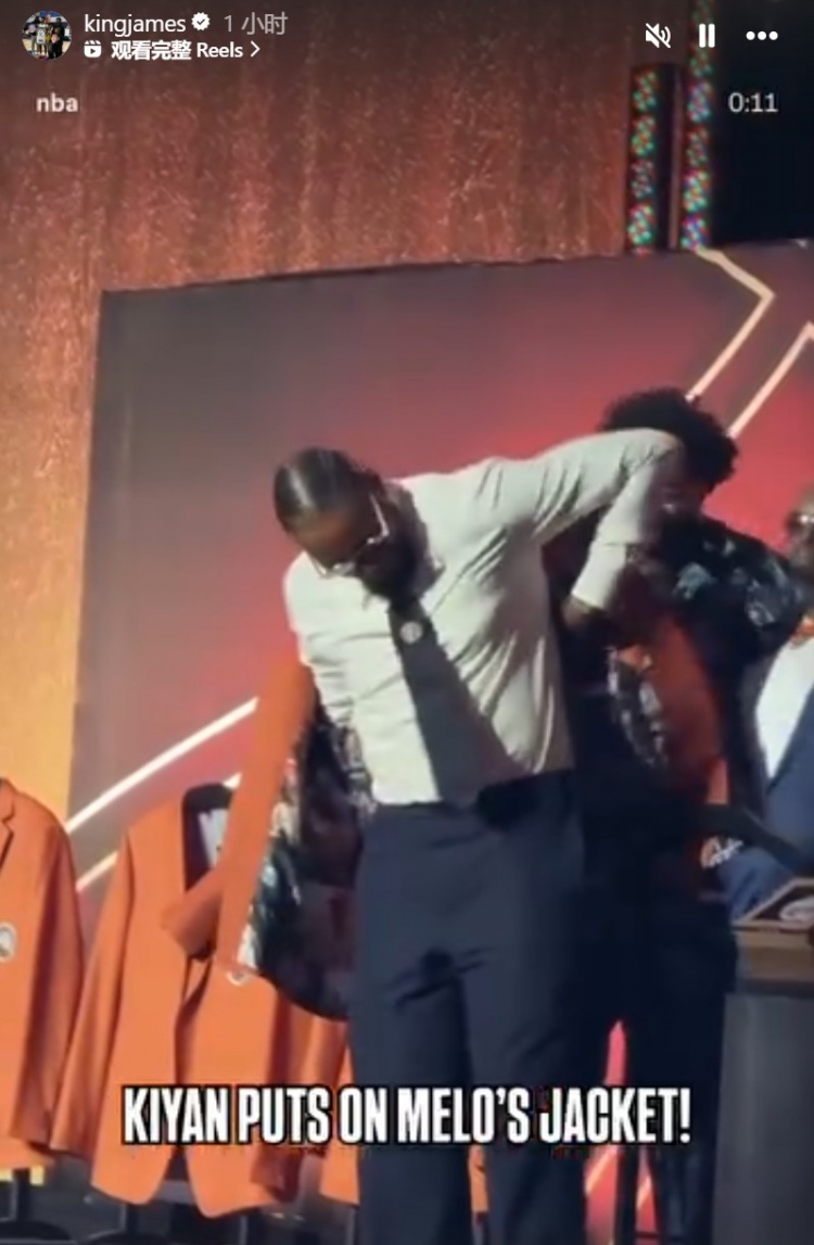 甜瓜之子基扬为父披上名人堂荣誉战袍 詹姆斯INS转发同庆